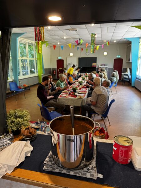 Achter de museumwoning bevindt zich een grote, lichte ruimte. Het is een plek voor ontmoeting en het delen van verhalen. We organiseren er exposities en lezingen over actuele en historische thema’s, waarin heden en verleden met elkaar worden verbonden. Want het Soesterkwartier is voortdurend in beweging!