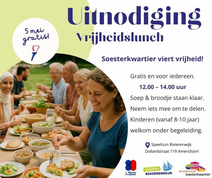 Op verschillende plekken in Nederland kun je op 5 mei aanstaande genieten van een vrijheidsmaaltijd. Ook in het Soesterkwartier vieren we de vrijheid met elkaar. Op 5 mei aanstaande van 12.00 – 14.00 uur organiseren Wijkmuseum Amersfoort en Speeltuin Rivierenwijk [...]
